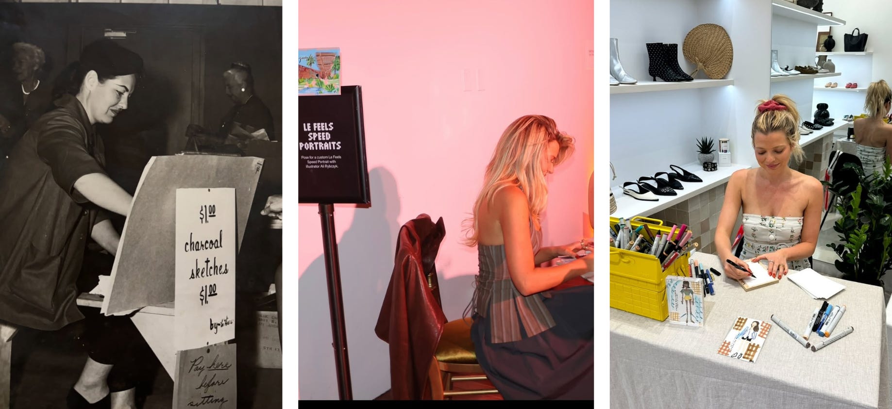 “Illustrating is the most fluent language for me,” says the 32-year-old artist from Southern California. “I translate people through line. When someone poses in front of me, I’m not just drawing their outfit — I’m drawing an emotion, the way they hold themselves. That immediacy is what makes it feel alive.”