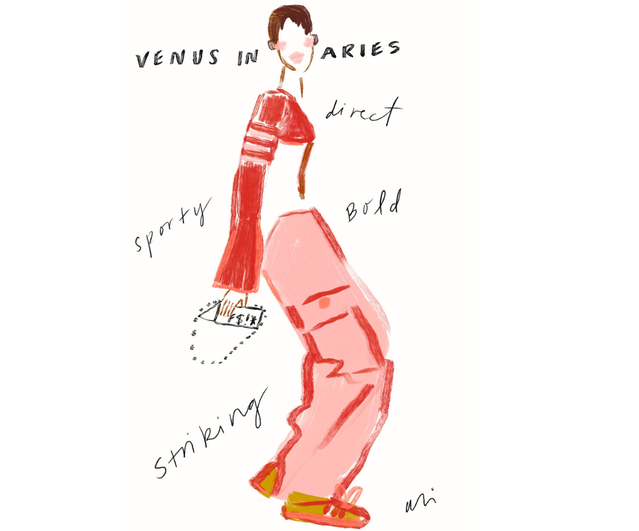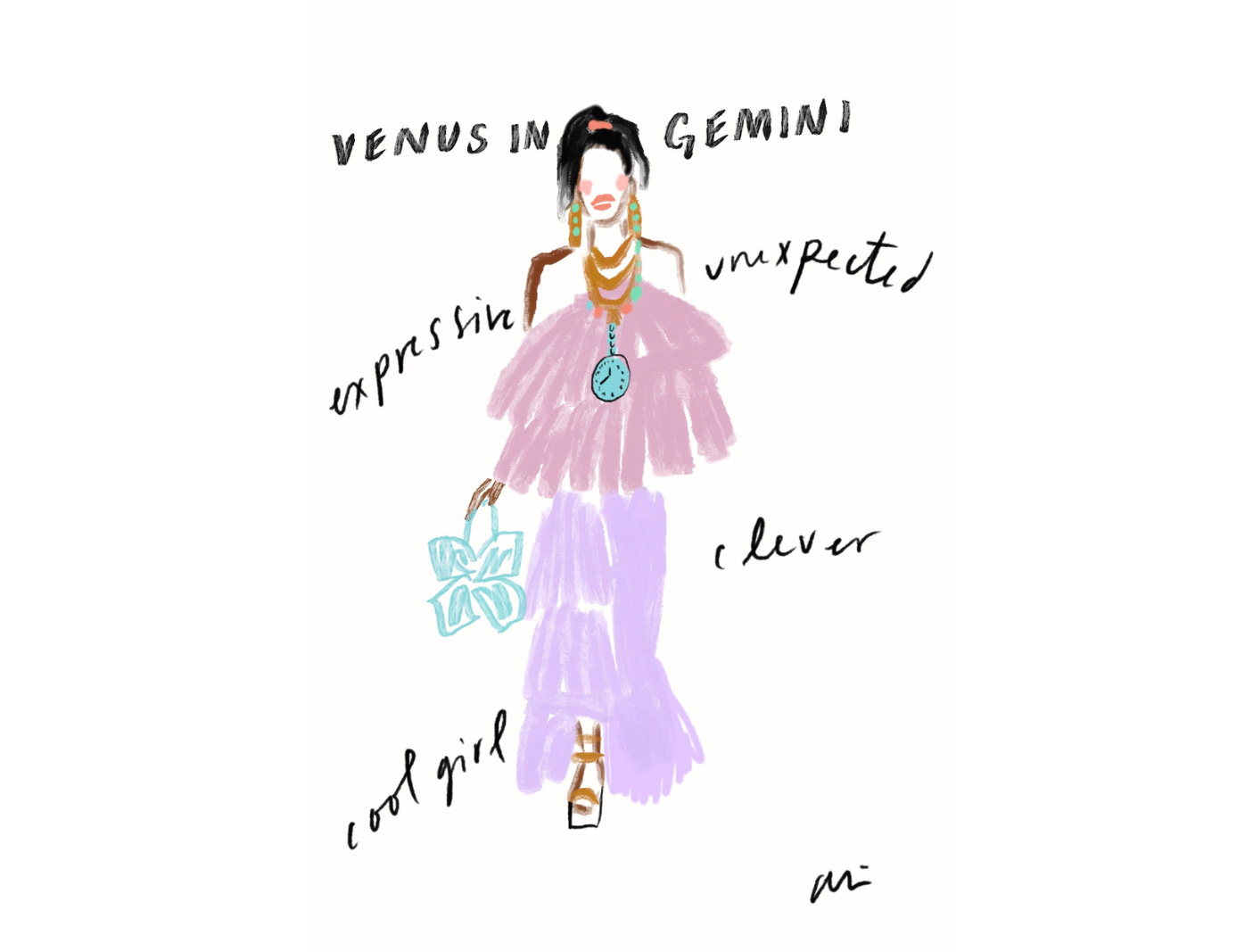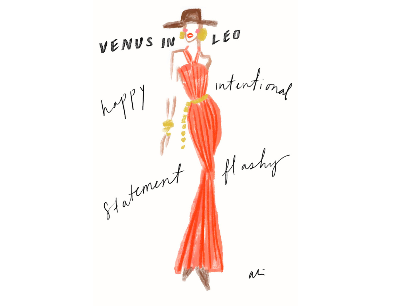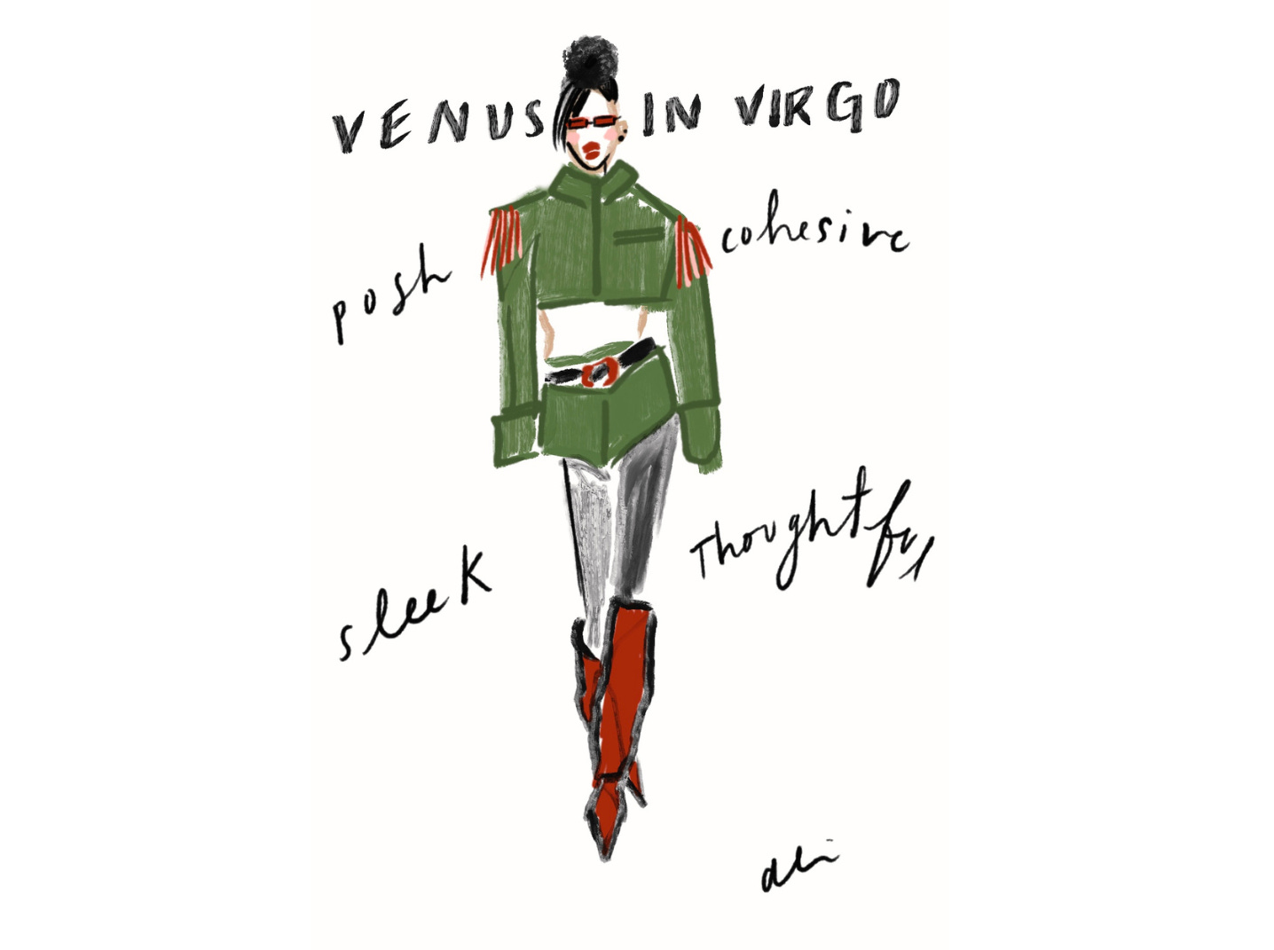 So, to help ensure your next ‘fit is fabulous, lean into Venus when playing around with your personal style and wardrobe based on the 12 exclusive drawings from Ali below.
